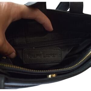 This elegant Ralph Lauren black leather small bag is both stylish and functional. Featuring a gold zipper with a signature logo tag, it offers a sleek design with plenty of space for everyday essentials. The interior is lined with a durable fabric, complete with a zip pocket for added organization. Perfect for any occasion, this timeless handbag adds a touch of luxury to your wardrobe. Ideal for work, travel, or casual outings
