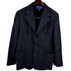 Vintage Ralph Lauren Blue Label Striped Blazer Notch Lapel Pocket Wool Navy 12