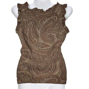 Vintage Ralph Lauren Brown Paisley Sleeveless Cashmere Top Ruffle Black Label M