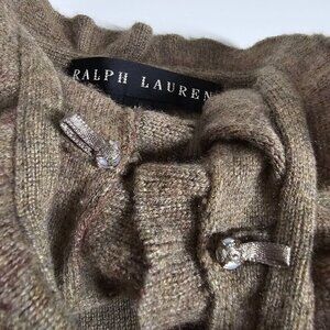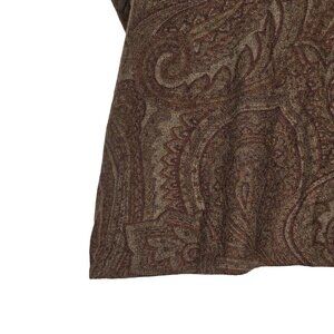 Tags: Ralph Lauren, paisley top, sleeveless top, ruffle trim, medium size, wool blend, cashmere blend, brown top, olive top, women's sweater, casual wear, pullover, designer brand