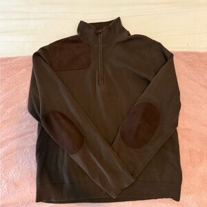 Stay stylish and comfortable with this brown sweater featuring classic elbow patches. Perfect for any casual occasion.