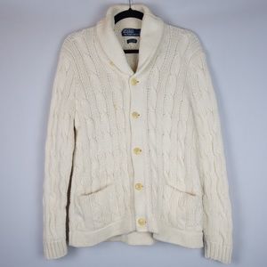 Vintage Ralph Lauren Cable-Link Hand Knit Cardigan Sweater w/ Shawl Collar, Sz M