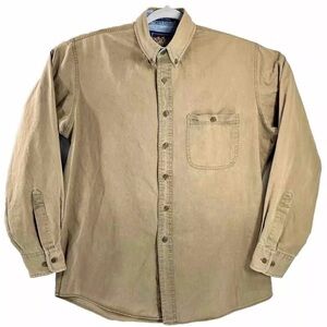 Vintage Ralph Lauren Chaps Button Shirt Mens 14 1/2 Field Factory Khaki Safari