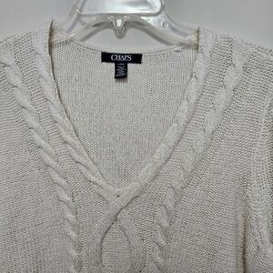 Vintage Ralph Lauren Chaps Womens Cable Knit Sweater Vneck Ivory w Sparkle Large