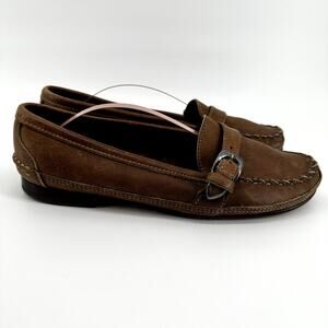 Vintage Ralph Lauren Country Buckle Loafers Slip On Round Toe Heel Suede Brown 9
