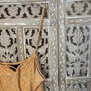 This vintage Ralph Lauren dress is a delightful addition to any woman's wardrobe, featuring a charming floral pattern in a cottagecore style. The dress has a square neckline and sleeveless design, perfect for a summer or spring occasion such as a wedding, party, or casual outing. Made from 100% cotton with a lace fabric type, this knee-length dress is lightweight and comfortable for all-day wear. The orange color and unique 90s theme make it a standout piece for those who appreciate vintage fashion with a touch of whimsy and nostalgia.