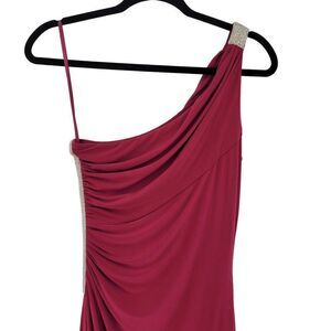 Vintage Ralph Lauren Gown 6 Pink Rhinestone One Shoulder Side Ruched Slit Sexy