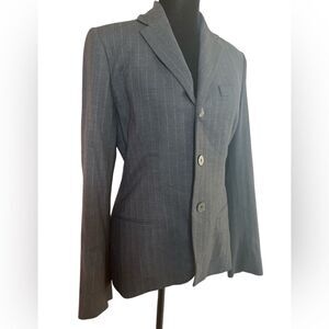Vintage Ralph Lauren Gray Blazer Size 6 Wool Tailored Pinstriped Academia Preppy