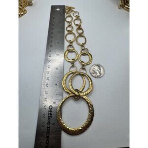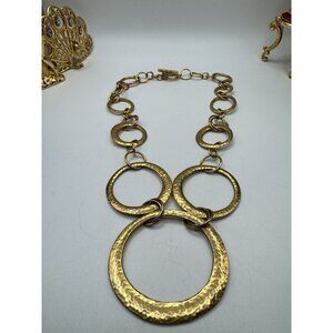 Vintage Ralph Lauren Hammered Gold Tone Necklace Open Circle Disk Toggle