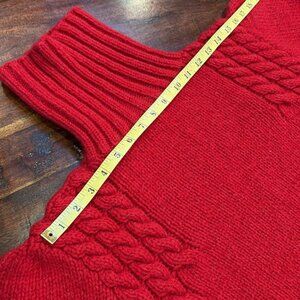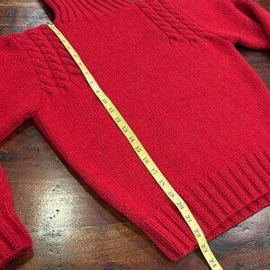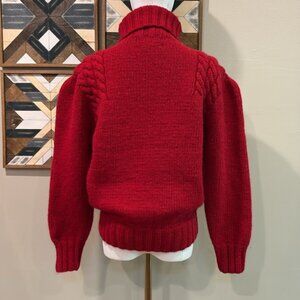 Vintage Ralph Lauren Hand Knit Wool Puff Sleeve Turtleneck Sweater Red Large