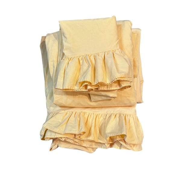 Vintage Ralph Lauren Home Yellow Cotton Ruffle 3 Piece Sheet Set Full Fitted Pil