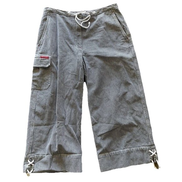 Vintage Ralph Lauren Jeans Co. Pants 12 Blue White Stripe Cropped Cargo Pockets