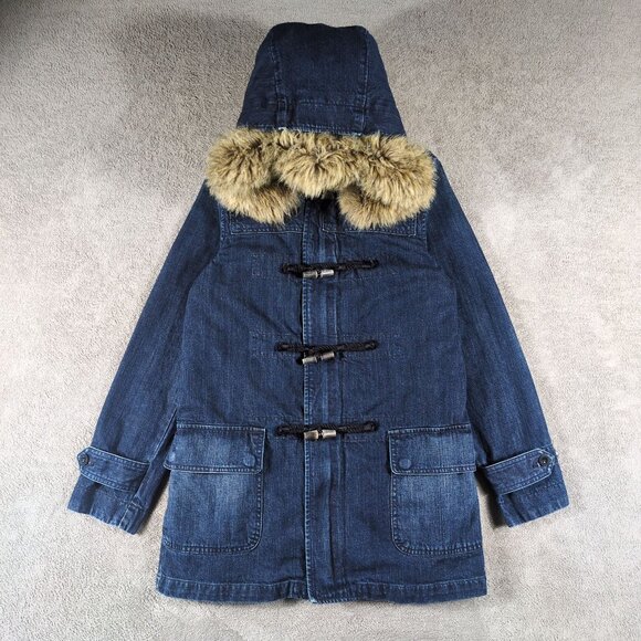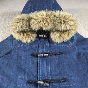 Vintage Ralph Lauren Jeans Co Women’s S Denim Toggle Coat Faux Fur Hood Plaid