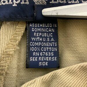 Vintage Ralph Lauren Khaki Cotton Midi Skirt Size 12 Pockets Pleated Front