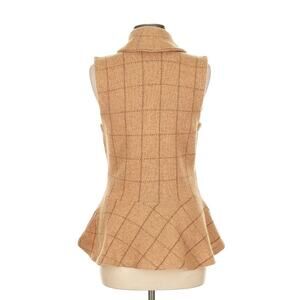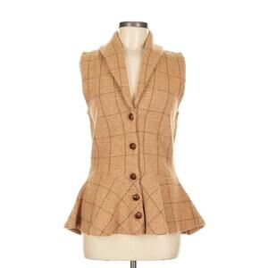 Vintage Ralph Lauren Lambswool Peplum Sweater Vest Plaid Cardigan Camel Beige M