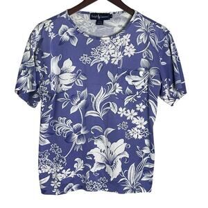 Vintage Ralph Lauren Lot of 2 Pocket Tee Size M 100% Cotton Floral Hawaiian Pink Purple