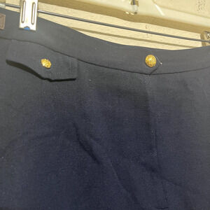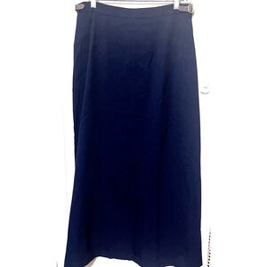 Vintage Ralph Lauren Maxi Skirt Wool Leather Buckle Old Money Navy Blue 8
