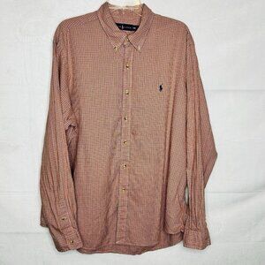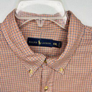 Vintage Ralph Lauren Mens 2XL Collared Button-Down Shirt Plaid Orange Blue