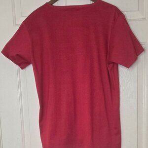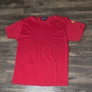 Vintage Ralph Lauren Men's Red Tee with Gold Crest on Sleeve Size L