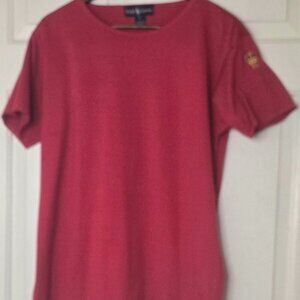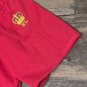 Classic and bold Ralph Lauren red tee featuring a gold embroidered
