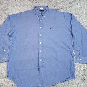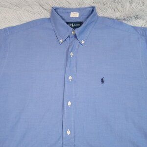 Vintage Ralph Lauren Mens Shirt Blue 16.5 Button Up Pony Preppy Career 34 35