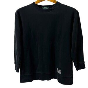 Vintage Ralph Lauren Men's Thrashed Sun Faded Black Crewneck Logo Sweatshirt M