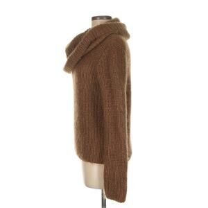 Super soft knit sweater. This is a blend of 51% mohair, 41% Acrylic, 5% Polyester, and 3% metallic. The metallic shows as shimmering flecks of gold in the knit. Huge cowl neck.