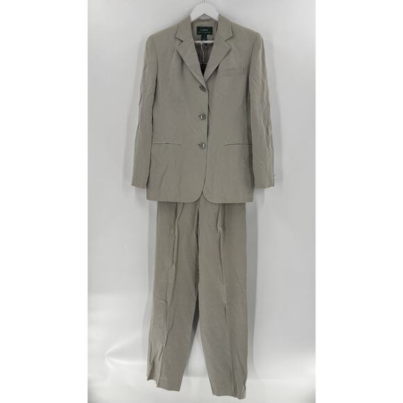 Vintage Ralph Lauren Pants Suit Womens 8/10 Gray Silk Linen 90s Pockets Pleated