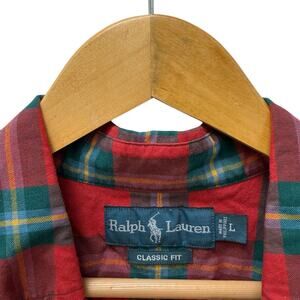 Vintage Ralph Lauren Plaid Button Down Flannel Red Green Men’s Size Large