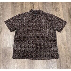 Classic Polo Jeans Co. by Ralph Lauren mens short sleeve button-front shirt featuring a blueish purple/ purplish blue and tan geometric pattern.