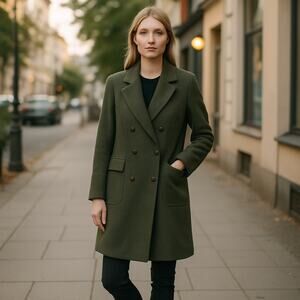 Vintage Ralph Lauren Polo Jeans Woolen Double Breasted Pea Coat Dark Green M