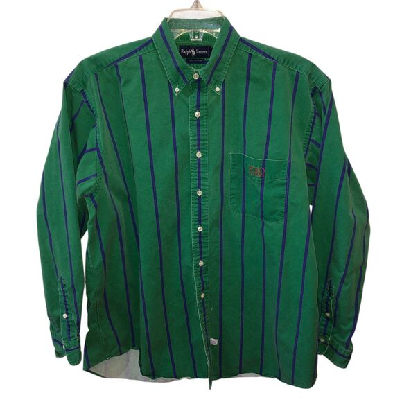 Vintage Ralph Lauren Polo Sport Mens XL Green Blue Striped Long Sleeve Shirt