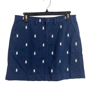 Vintage Ralph Lauren Pony Logo Embroidered Mini Skirt Navy Blue Preppy Y2K Sze 6
