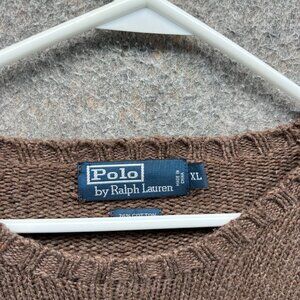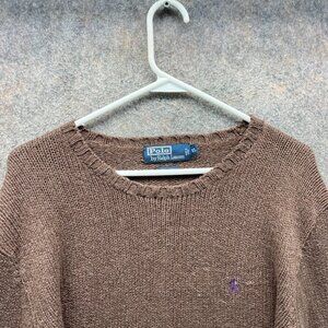 Vintage Ralph Lauren Pullover Men XL Brown Crewneck Sweatshirt Linen Knitted