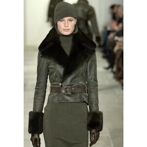 Ralph Lauren Collection Purple Label Women’s Lambskin Fur Trim Cuff Belted Jacket size 8 / Medium M