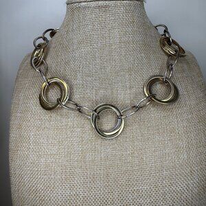 Vintage Ralph Lauren RLL Gold & Silver Circle Link 18" Toggle Necklace Statement