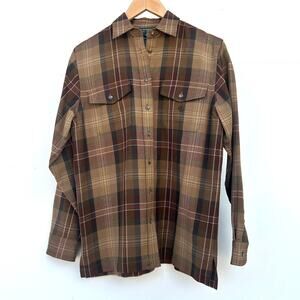 Vintage Ralph Lauren RLL Plaid Brown Button Down Shirt Small Worsted Wool