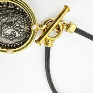 Vintage Ralph Lauren RLL Stamped Bracelet Leather Cord Pendant with Coin Design