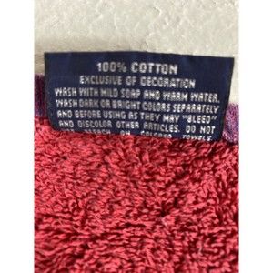 Vintage Ralph Lauren Red and Blue Beach Towel with the classic large Polo Pony, a border of stirrups, and "Ralph Lauren" at the bottom Measures about 34" x 64" and Made in the USA