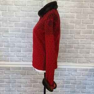 Vintage Ralph Lauren Red Fair Isle Wool Cardigan Sweater Cozy Cabin Heritage Med