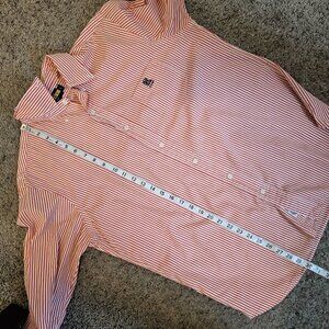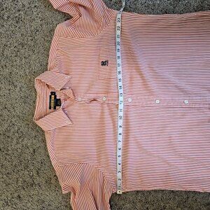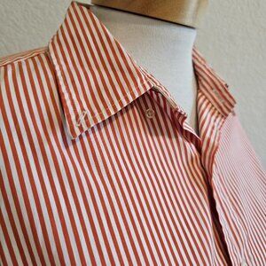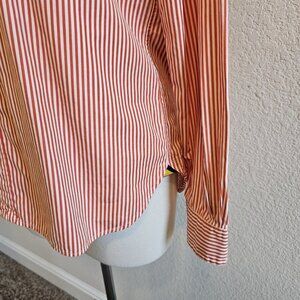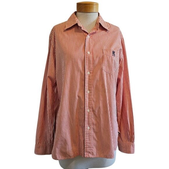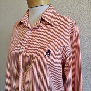 Vintage Ralph Lauren Rugby Orange Striped Cotton Long Sleeve Collared Shirt L