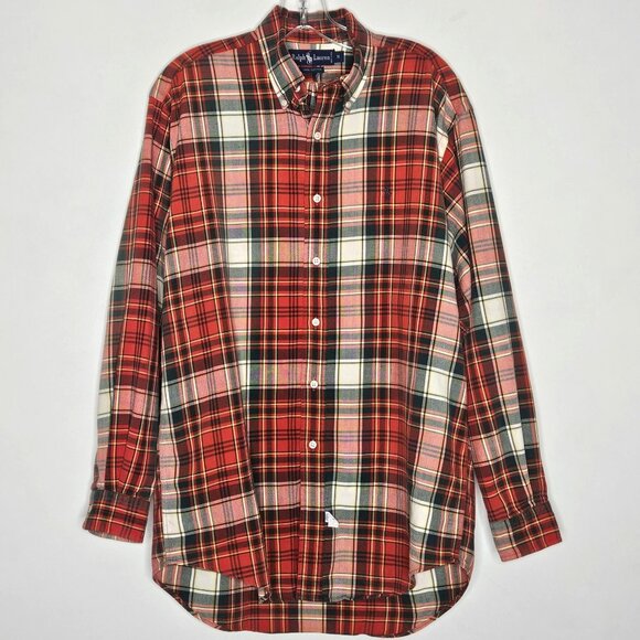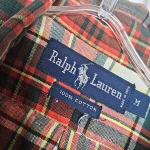 Vintage Ralph Lauren Shirt Mens Medium Red Plaid Button Up Preppy Western Casual
