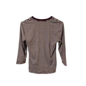 Vintage Ralph Lauren Size Medium Maroon Striped 3/4 Sleeve Blouse