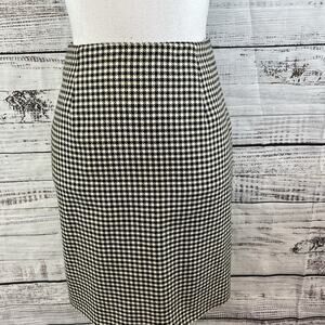 Vintage Ralph Lauren Skirt sz 6 Pet Black Ivory Hounds Tooth Wool Straight Knee