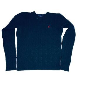 Vintage Ralph Lauren Sport Cable Knit Wool Sweater Women’s Black Crewneck Sz XS