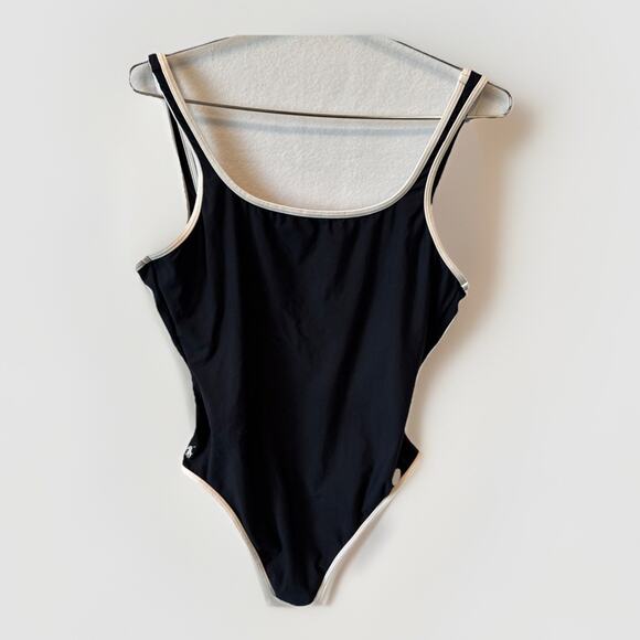 Vintage Ralph Lauren Sport Pony Logo Swimsuit 14 Black White Trim And Pony Scoop
