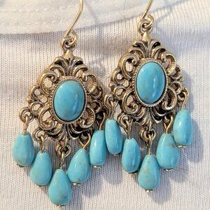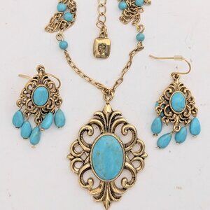 Vintage Ralph Lauren Statement Turquoise-like Gold Tone Necklace & Earrings Set!