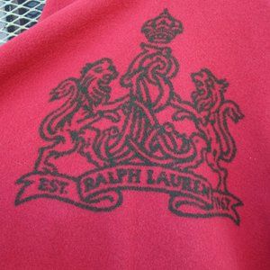 Vintage Ralph Lauren red and green thick wool blanket cape with the iconic RL lion insignia on the back.
