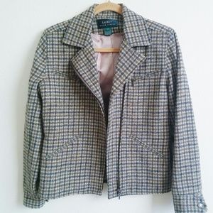 Genuine vintage Ralph Lauren houndstooth jacket. 4 front pockets, cinched waist belts, and fully lined.