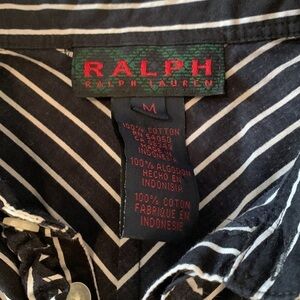 Navy chevron stripes, ruffle down front. Ralph plaid tag, perfect for the collector.